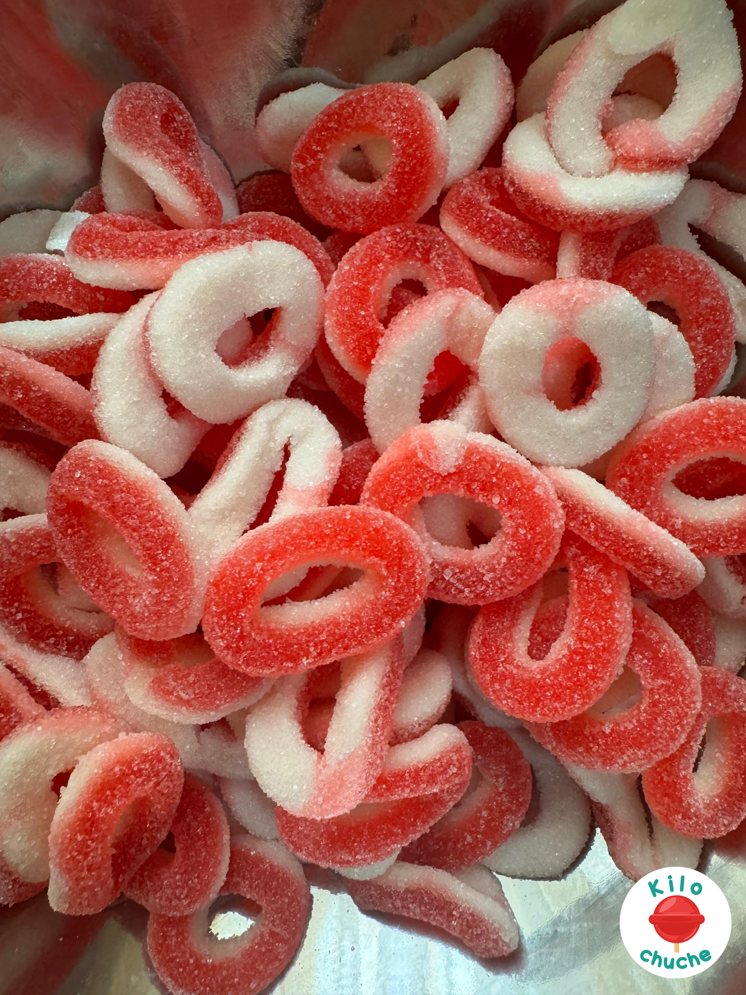 Ingredientes: Jarabe de glucosa, azúcar, agua, gelatina, acidulante E330, aroma y colorante E129. Halal Beef Gelatine. Sin grasa.