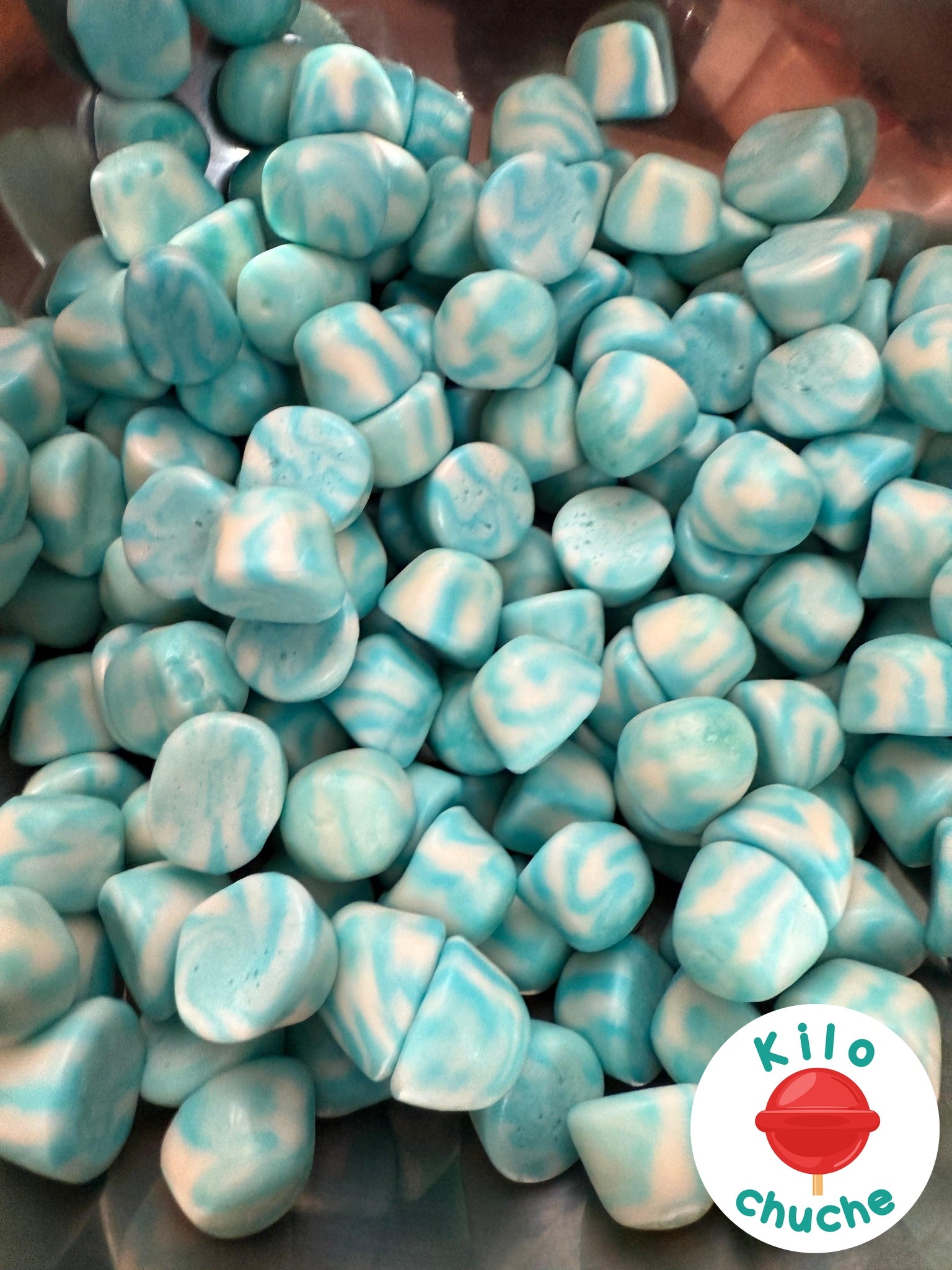 Ingredientes: Jarabe de glucosa, azúcar, agua, gelatina, acidulante: E330, E296, E270, gelificante: pectina, aromas, colorantes: E133, E516. Halal.