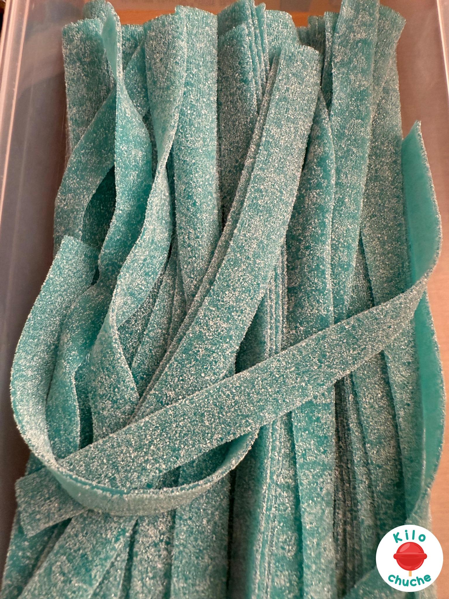Ingredientes: azúcar, jarabe de glucosa y fructosa, harina de TRIGO, agua, acidulantes E339, E296, grasa vegetal (coco), correcto de acidez E350, emulgente E471 (aceite de palma), aromas, conservador E202 y colorante E102 E104 E110 E122 E124 E129.