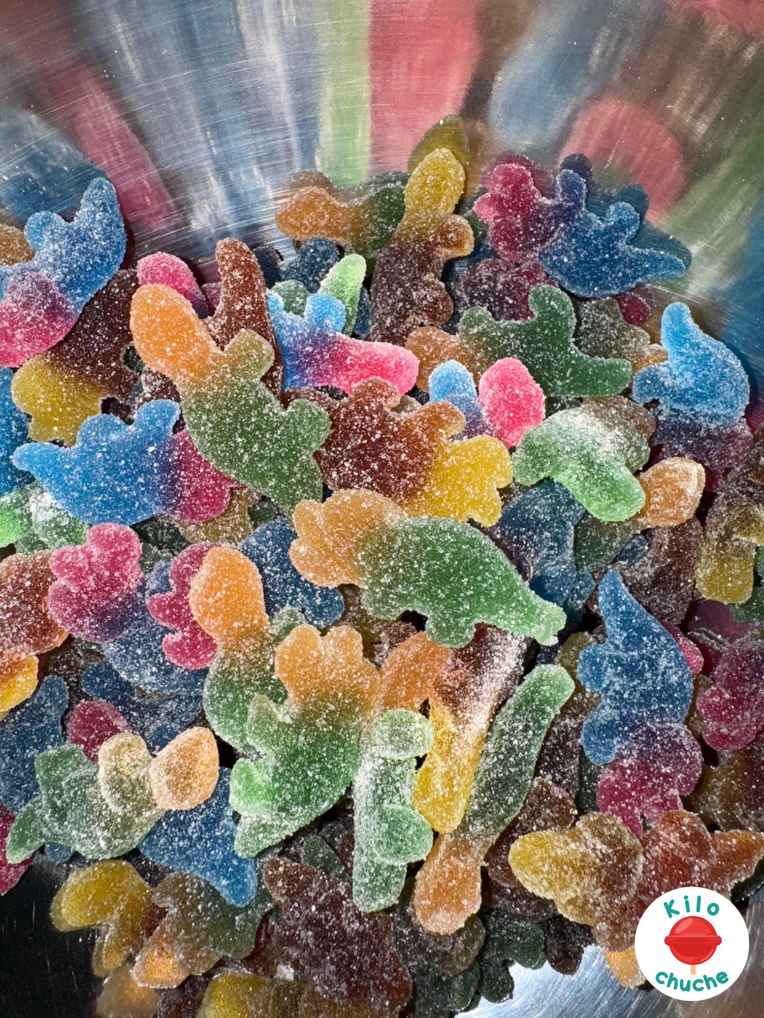 Ingredientes: jarabe de glucosa, azúcar, humectante, jarabe de sorbitol, agua, gelatina, acidulantes, ácido cítrico, ácido málico, correctores de acidez, malato ácido de socio, citrato trisódico, gelificante: pectina amidada, aroma, jarabe de caramelo: concentrados de frutas y plantas: espirulina, cártamo manzana, rábano, naranja, limón, mango, fruta de la pasión, baya de saúco, boniato, grosella negra.
