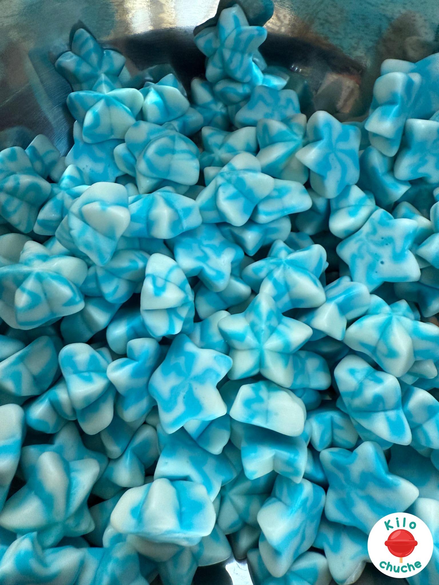 Ingredientes: Jarabe de glucosa, azúcar, agua, gelatina, acidulantes: E330, E296, E270, Gelificante: pectina, aromas, colorantes: E133, E171 E516, agente de recubrimiento: aceite vegetal (palma) y cera de carnauba. Halal.