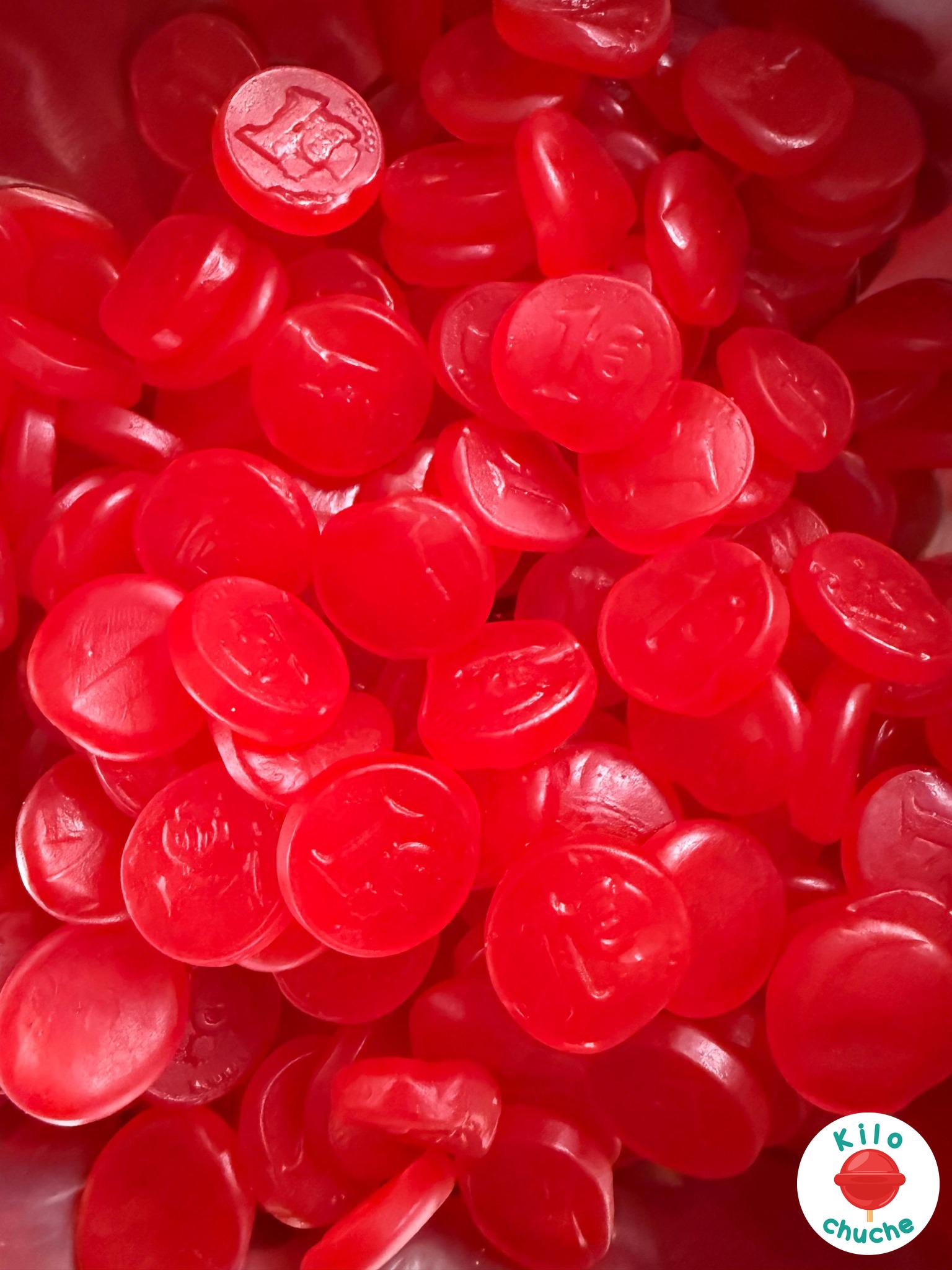 Ingredientes: Jarabe de glucosa, azúcar, almidón, agua, gelatina, acidulantes (E330, E270), corrector de acidez (E325), aromas, agentes de recubrimiento (E901, E903), colorante: E129. Puede contener derivados lácteos.