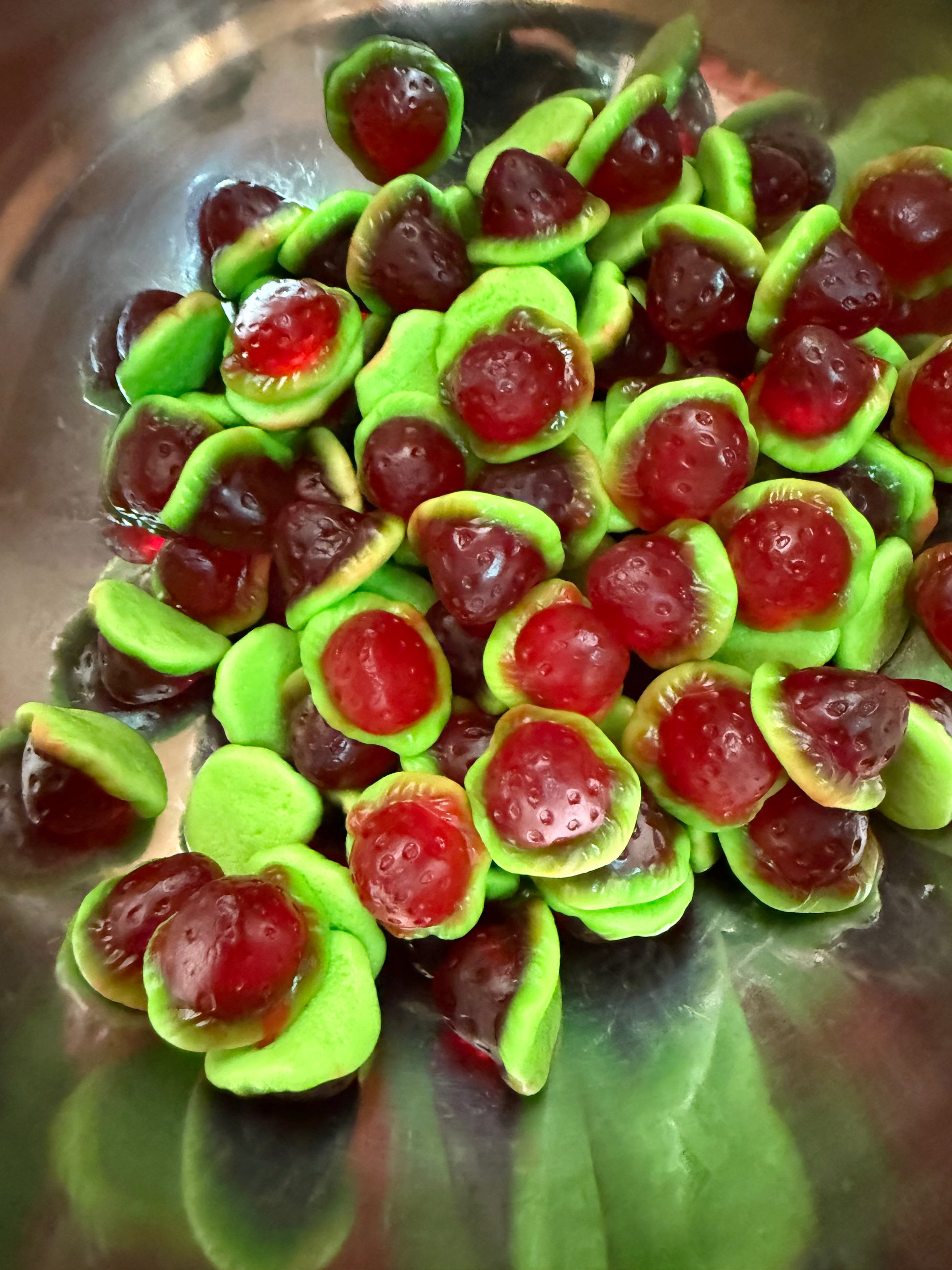 Ingredientes: Jarabe de glucosa, azúcar, agua, gelatina, acidulantes: E330, E296, E270, gelificante: pectina, aromas, corrector de acidez: E331, colorantes: E102, E129, E133, aceite vegetal (palma), agente de recubrimiento: cera de carnauba. Halal.