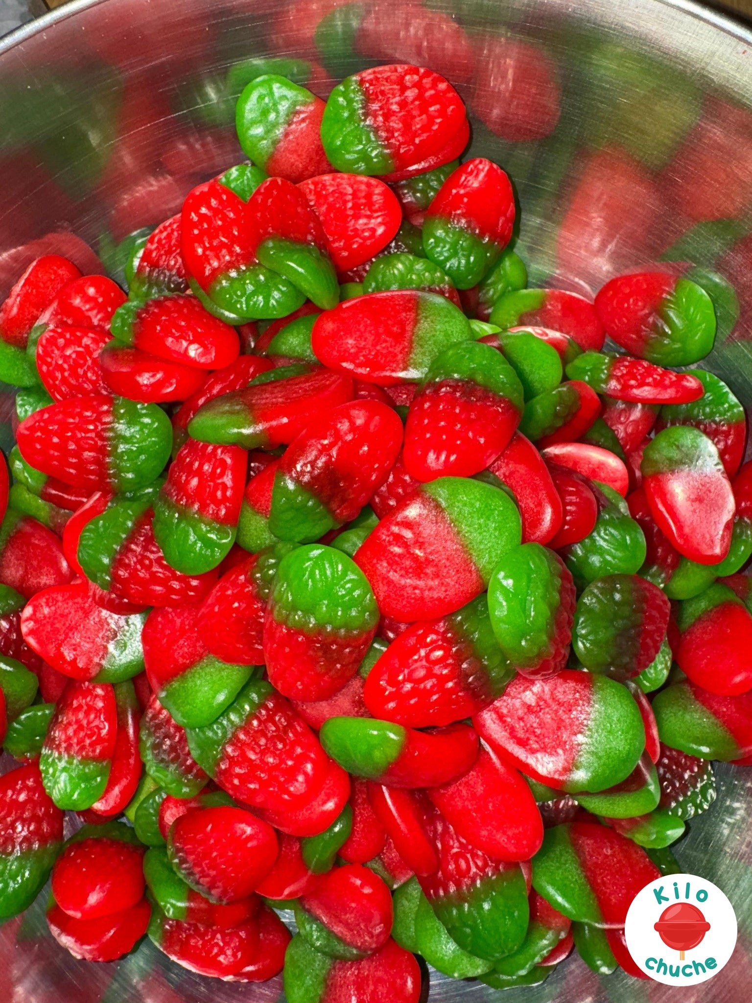 Ingredientes: Jarabe de glucosa, azúcar, agua, almidón, gelatina, acidulantes: E330, E296, E270, aromas, colorantes: E102, E129, E133, aceite vegetal (palma), agente de recubrimiento: cera de carnauba. Halal.