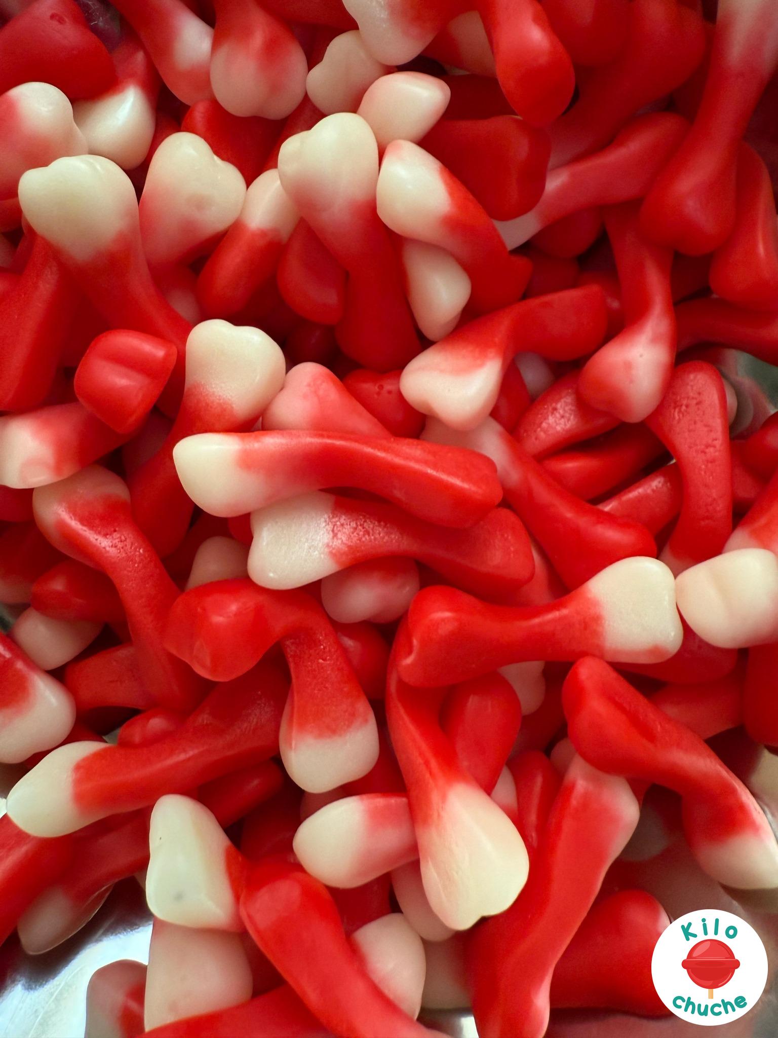 Ingredientes: Jarabe de glucosa, azúcar, agua, gelatina, acidulantes E330 E296 E270, gelificante: pectina, aromas, colorantes E129, aceite vegetal (palma) y agente de recubrimiento cera de carnauba. Halal.