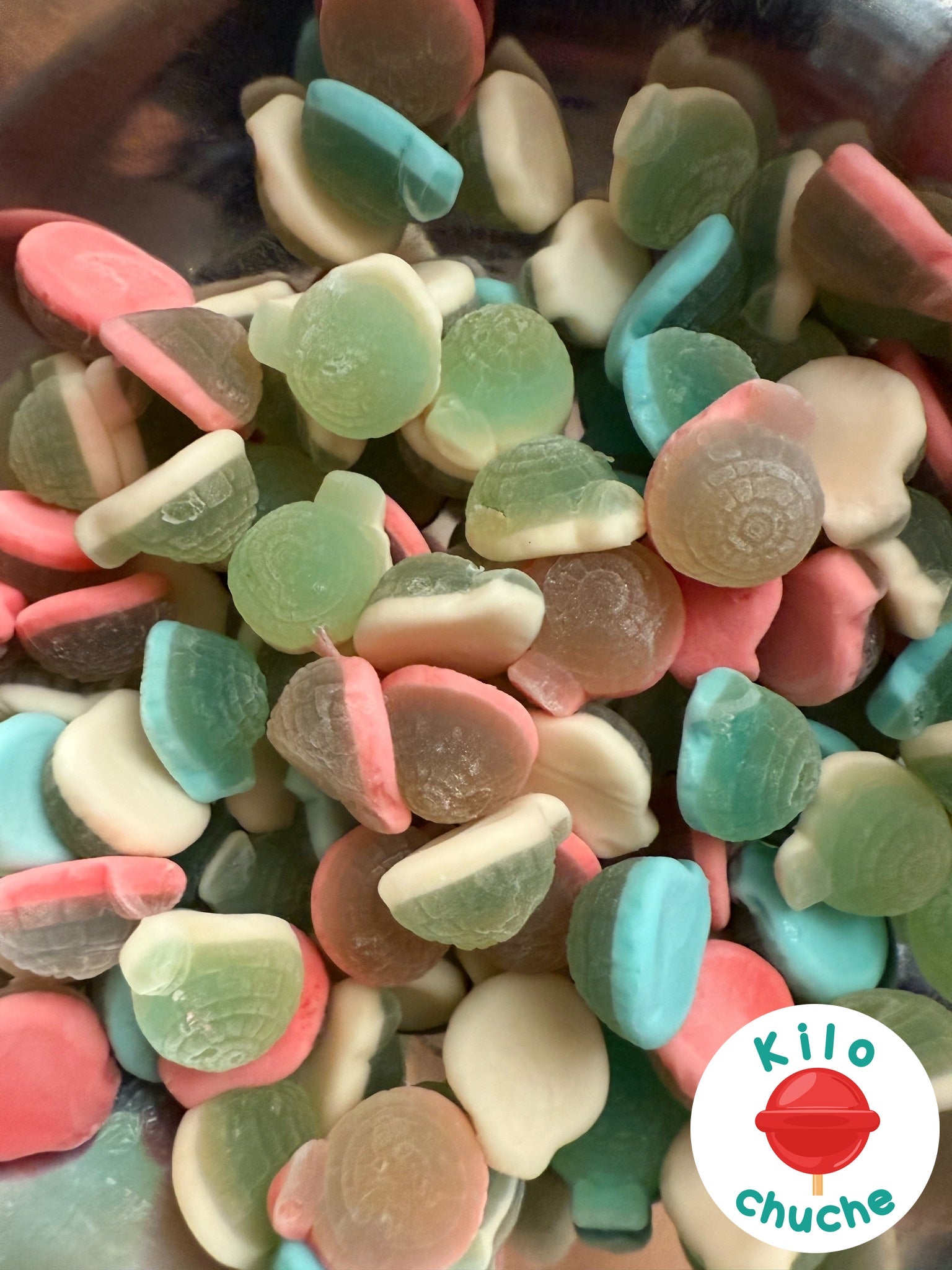 Ingredientes: jarabe de glucosa, azúcar, agua, gelatina, humectante E420, gelificante (almidón, acetilado), acidulante E330, gelificante pectina, acidulante E270, Corrector de acidez E325, aromas, agentes de recubrimiento E901 E903, colorantes E129 E133. Puede contener lácteos.