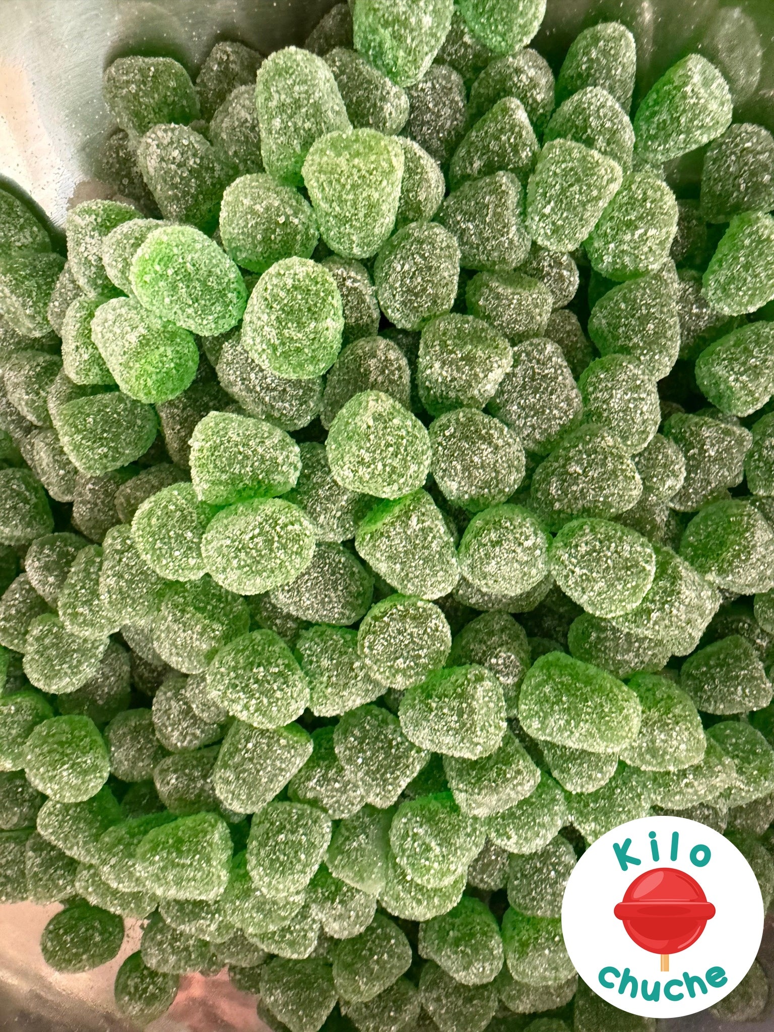 Ingredientes: Jarabe de glucosa, azúcar, agua, almidón modificado de patata, gelatina, acidulantes: E330, E296, E270, aromas, colorantes: E102, E133. Halal.