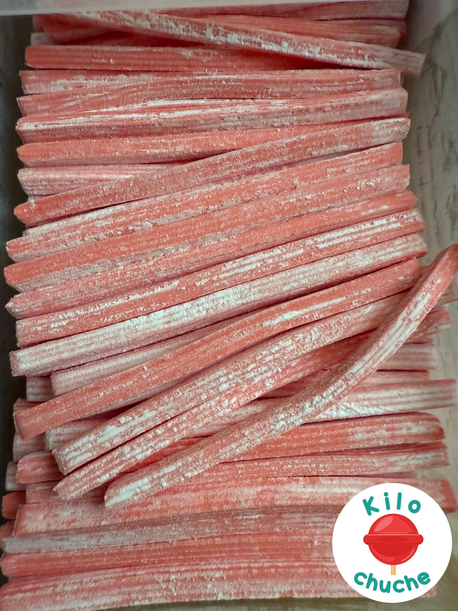 Ingredientes: azúcar, jarabe de glucosa y fructosa, gelatina, grasa vegetal (palma), humectante E422, acidulantes E296 E270, corrector de acidez E325, aromas.