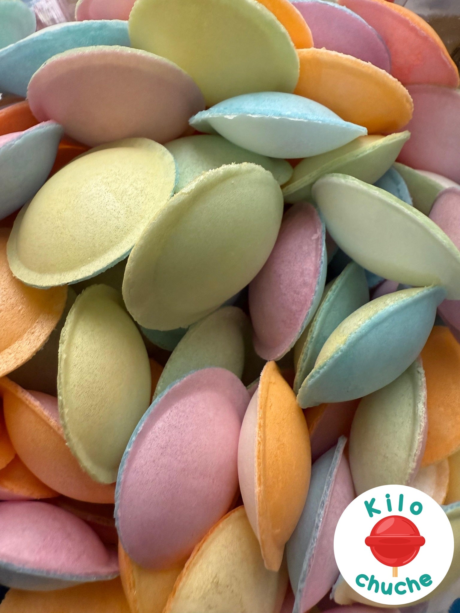 Ingredientes: Golosina a base de oblea de maíz con relleno de dextrosa y azúcar. Almidón de maíz (40%), dextrosa (24%), azúcar (24%), almidón de maíz pregelatinizado, acidulantes (ácido málico, ácido cítrico), regulador de la acidez: bicarbonato sódico, emulgente: lecitina de soja, extracto de plantas (cártamo), colorantes: rojo remolacha, paprika, índigo carmín, antiapelmazante: dióxido de silicio, aroma natural.