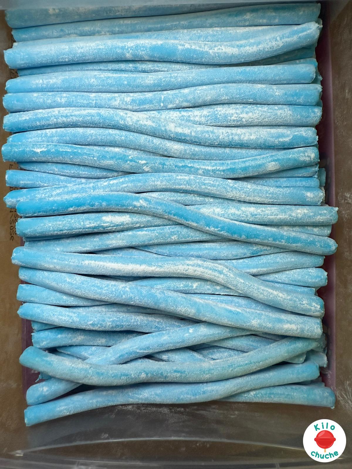 Ingredientes: azúcar, jarabe de glucosa y fructosa, harina de trigo (gluten), grasa vegetal (palma), almidón, humectante E422, acidulantes E330 E296 E270, gelatina, correctos de acidez E325 E331, aromas, sal, emulgente E471, colorante E120 E133.