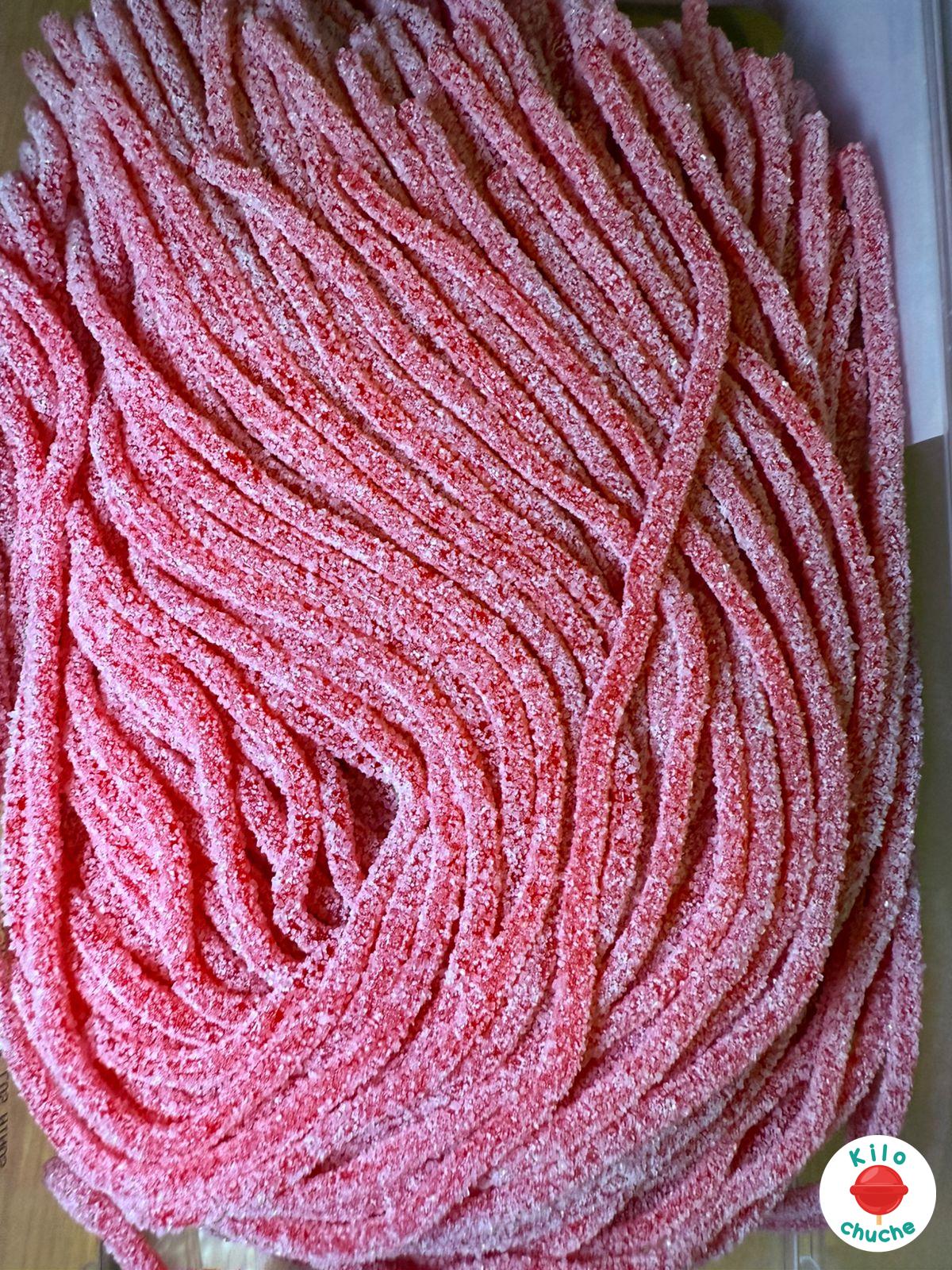 Ingredientes: Jarabe de glucosa y fructosa, azúcar, harina de trigo (gluten), almidón, acidulante (E296), grasa vegetal (palma), acidulantes (E330, E270), correctores de acidez (E325, E331), sal, emulgente (E471), aromas, humectante (E422), colorantes: E129. Puede contener trazas de soja y mostaza.