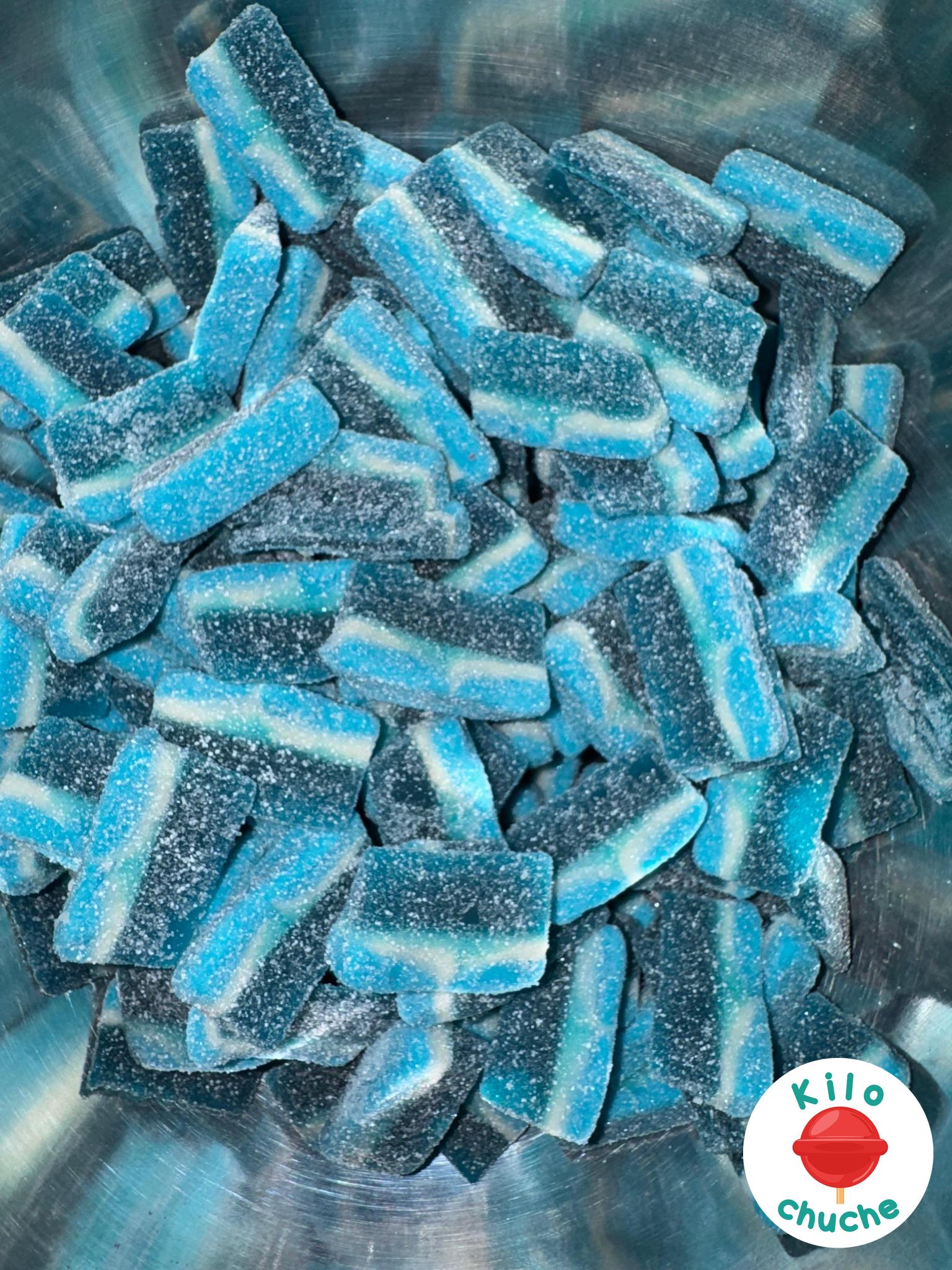 Ingredientes: Jarabe de glucosa, azúcar, agua, almidón, gelatina, acidulante: ácido cítrico, aromas, corrector de acidez: citrato sódico, agente de recubrimiento: cera de carnauba, colorantes: E133. Halal.