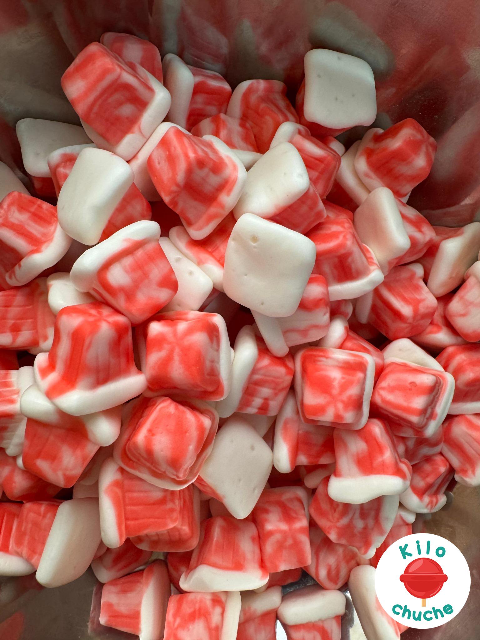 Ingredientes: Jarabe de glucosa, azúcar, agua, gelatina, acidualntes: E330, E296, E270, gelificante: pectina, aromas, colorantes: E129, E516. Aceite vegetal (palma), agente de recubrimiento: cera de carnauba. Halal.